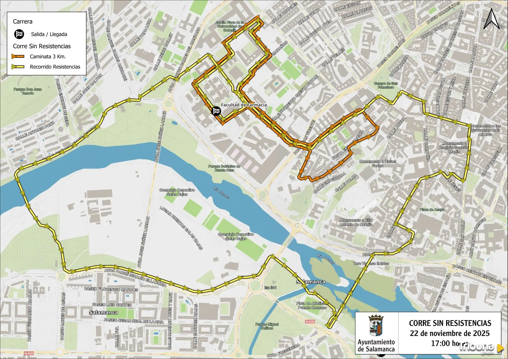 La celebración este sábado de la V edición de la carrera popular y marcha participativa 'Corre sin resistencias' provocará diversos cortes y desvíos de tráfico. La prueba trata de concienciar "sobre el problema de la resistencia a los antibióticos e involucrar a las universidades como colectivo clave en la mejora del uso de los mismos", explica la Delegación Salmantina de Atletisimo. Inscripción en este enlace.