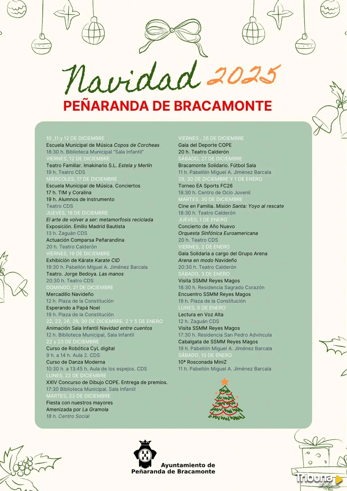 Peñaranda de Bracamonte se prepara para celebrar una Navidad repleta de actividades para todos los públicos, con especial protagonismo para los más pequeños. Para ello, el Ayuntamiento ha preparado una programación que arranca este fin de semana y se prolongará hasta el 10 de enero.