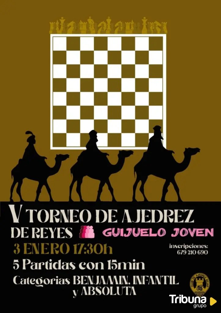 El Centro Joven de Guijuelo volverá a convertirse en el escenario del Torneo de Reyes de ajedrez, que en 2026 celebrará su quinta edición. La cita tendrá lugar el sábado 3 de enero, a partir de las 17:30 horas, y reunirá a jugadores de distintas edades en una jornada dedicada al ajedrez.