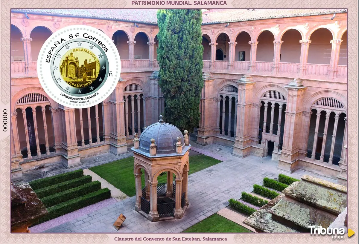 El sello ha sido presentado este jueves en el Convento de San Esteban por su Prior, Manuel Ángel Martínez Juan, acompañado por el alcalde de Salamanca, Carlos García Carbayo, y por la directora de Filatelia y Relaciones Institucionales de Correos, Nuria Lera Hervás.