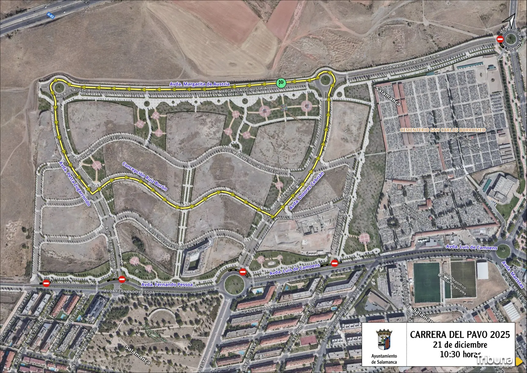 Este domingo tendrán lugar la Carrera del Pavo y la Cabalgaza, dos eventos que repercutirán en el tráfico con diversos cortes y desvíos. En concreto, a partir de las 10:30 horas y hasta la finalización de la Carrera del Pavo, permanecerán cerradas al tránsito de vehículos las avenidas Margarita de Austria, Miguel Torga, Petra Zugarrondo, Dolores Cebrián, Madame Alicia Docteur, Concepción Ruíz Burón y la calle Ángela Carraffa de Nava, todas ellas en el barrio de La Platina.