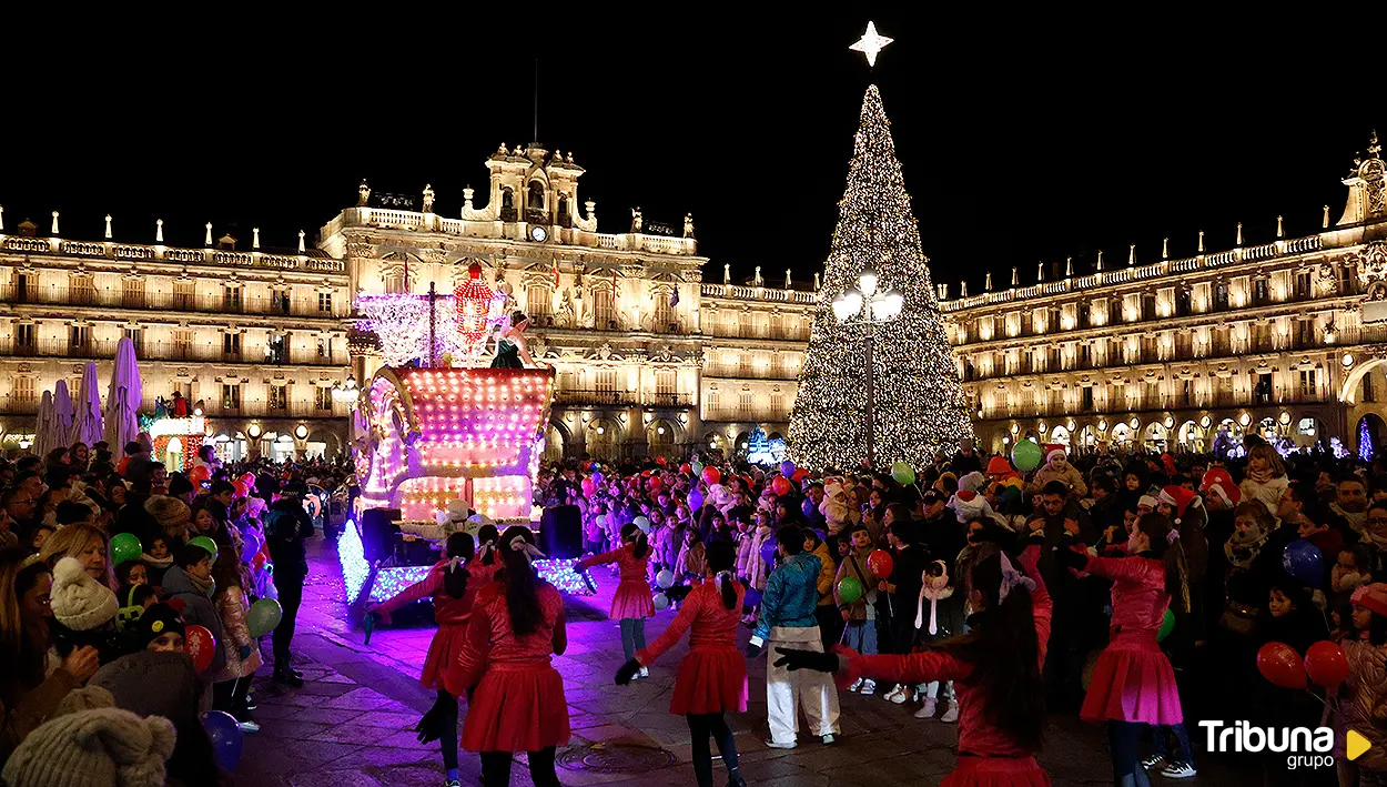 Érase una vez un domingo cercano a la Navidad, y Salamanca se preparaba para una tarde que prometía magia en cada rincón. La luz dorada de la piedra de Villamayor brillaba bajo las farolas, reflejando la ilusión de grandes y pequeños que se agolpaban en las calles del centro.