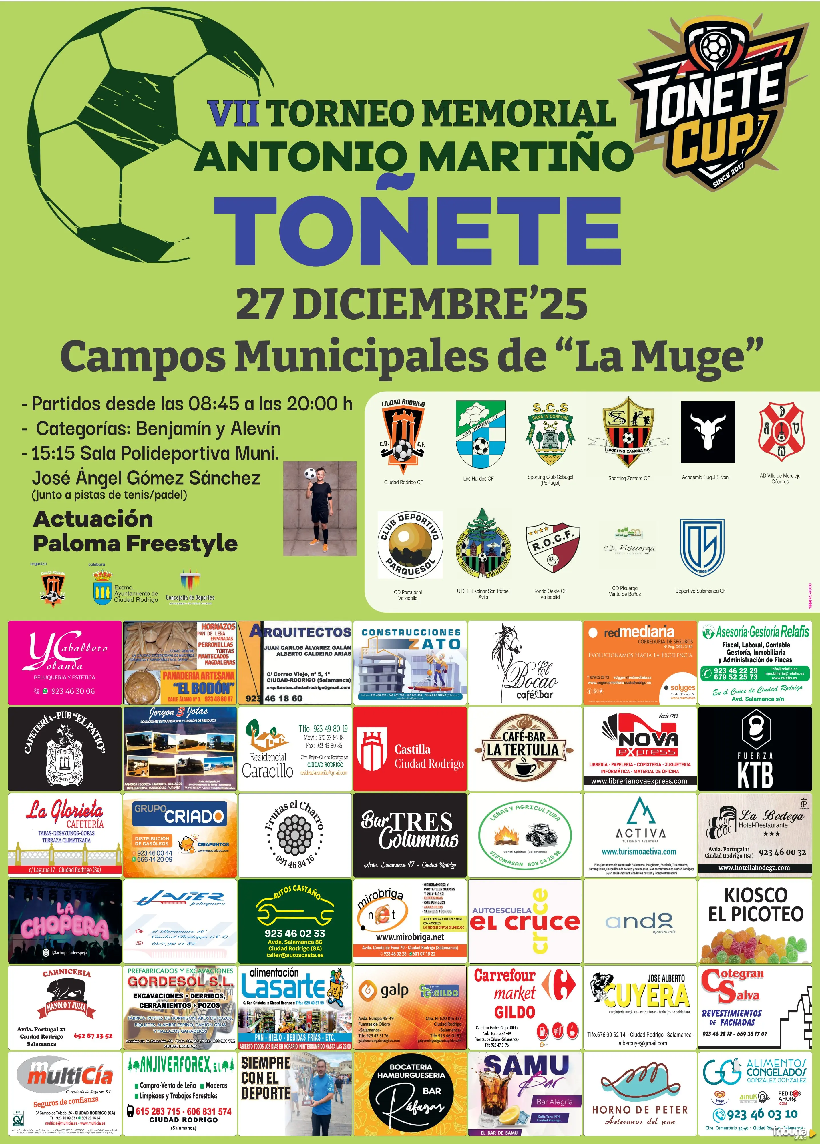 Ciudad Rodrigo celebrará la VII edición del Torneo Memorial Antonio Martiño 'Toñete' que, en esta edición, ha dado un paso importante con un cambio de fechas, ya que tradicionalmente se disputaba en verano y ahora pasa a celebrarse en Navidad. Los partidos serán desde las 08:45 horas hasta las 20:00 horas el 27 de diciembre en los Campos Municipales de la Muge.
