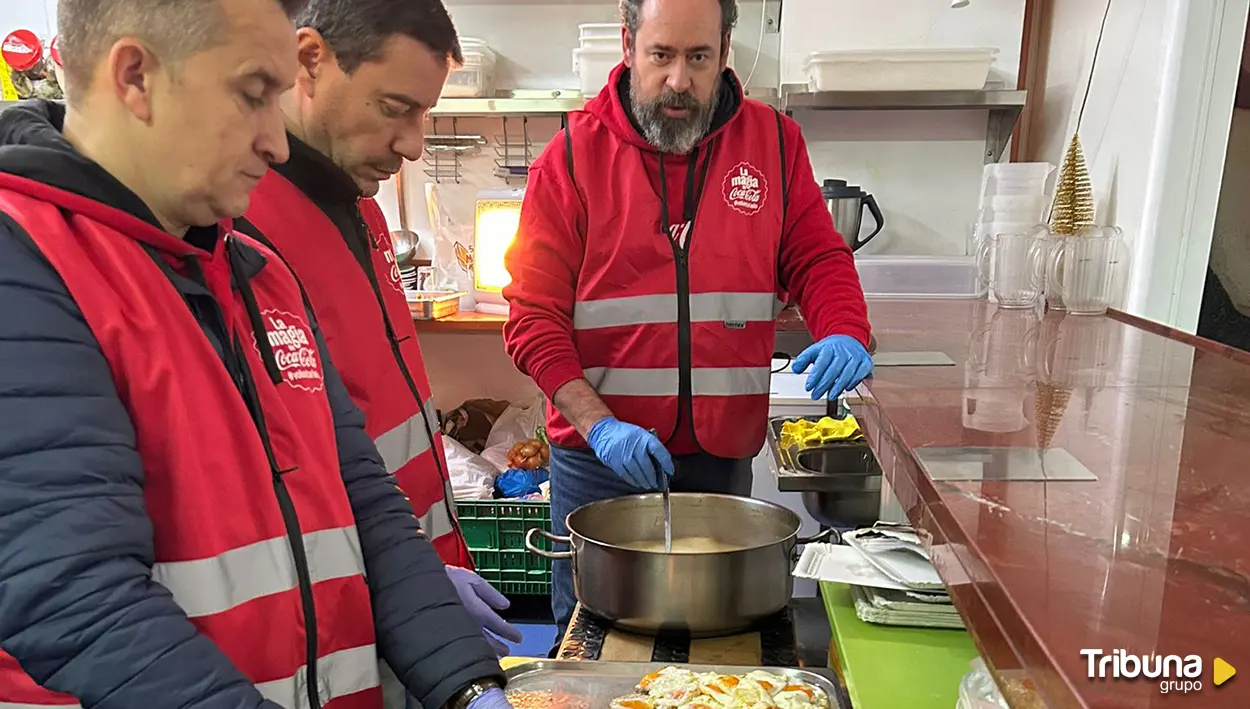 Los voluntarios de Coca Cola Europacific Partners han repartido 250 comidas y lotes de alimentos en el Comedor de los Pobres de Salamanca, dentro de su iniciativa 'Refresca tu espíritu navideño'. Reparto dirigido a familias en situación de vulnerabilidad social y económica.