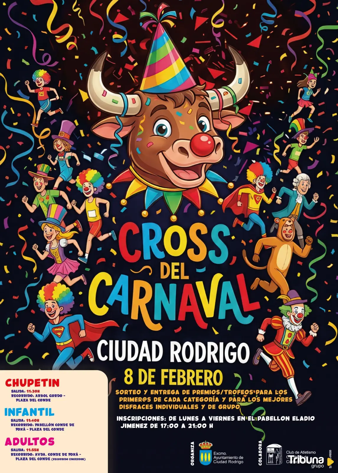 El Ayuntamiento de Ciudad Rodrigo, a través de la Delegación de Festejos y Deportes, ha organizado una nueva edición del Cross de Carnaval, una prueba deportiva que combina actividad física, disfraces y ambiente festivo previo al Carnaval.