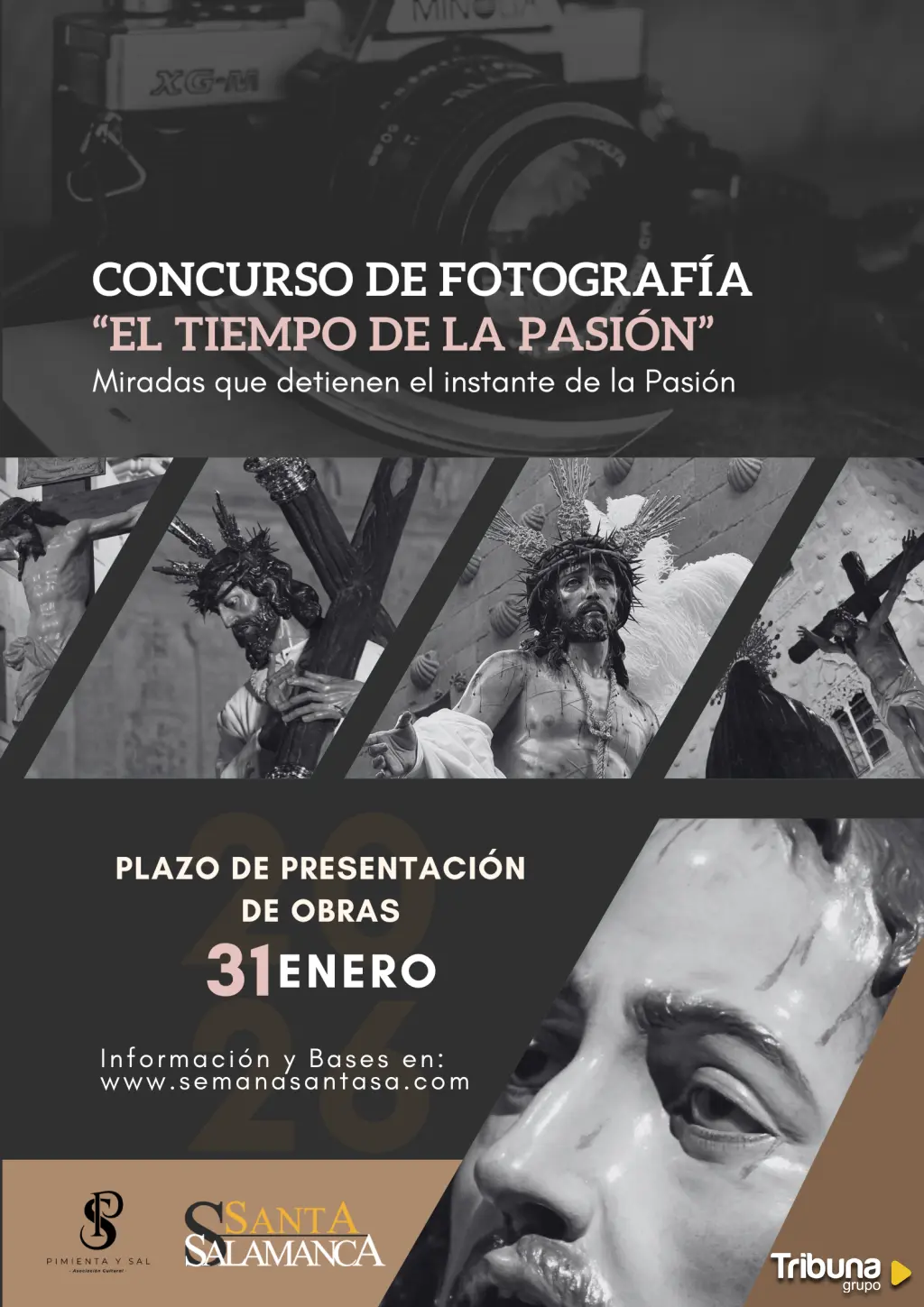 Por ello, el Portal Cofrade SSantaSalamanca y la Asociación Cultural Pimienta y Sal han puesto en marcha el I Concurso de Fotografía 'El Tiempo de la Pasión', un certamen abierto con participación gratuita en el que se buscan imágenes de la Semana Santa en sus diferentes vertientes: procesiones, cofradías, imágenes titulares, actos litúrgicos, momentos de devoción, bandas de música, detalles artísticos o instantes únicos que reflejen la esencia de la Pasión.