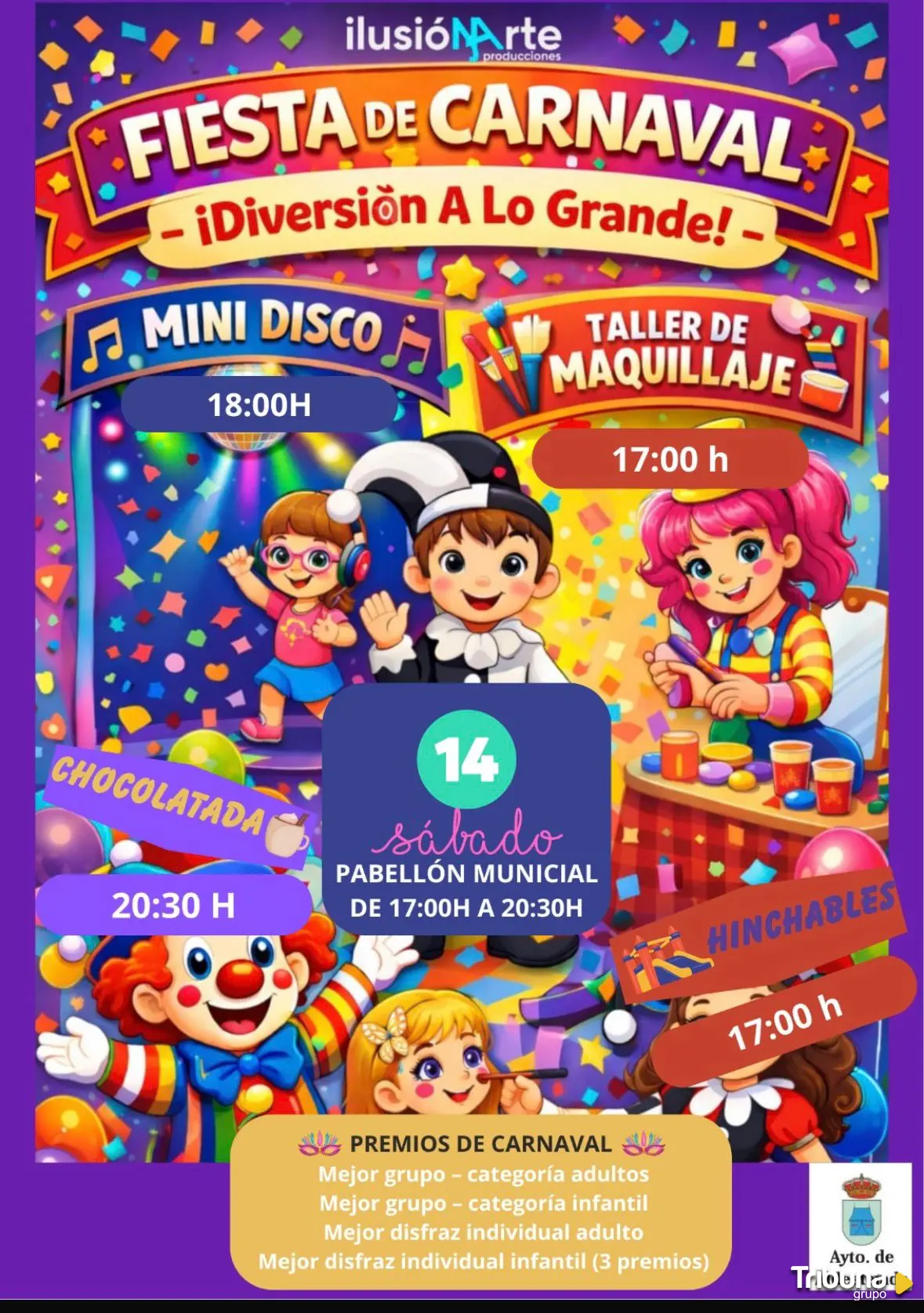 Con la mirada puesta en los más pequeños, el recinto acogerá todo tipo de actividades como una minidiscoteca, un taller de maquillaje, una chocolatada e hinchables que se complementarán con el concurso con el Ayuntamiento invita a todos los vecinos a disfrazarse para poder optar a diferentes premios. En concreto, los participantes podrán optar a los premios que se otorgan al mejor disfraz de grupo y al mejor disfraz individual, tanto en la categoría infantil como en la categoría de adultos. Además de esta gran fiesta de Carnaval, los niños del CRA Los Arapiles disfrutarán el viernes 13 de febrero de una deliciosa chocolatada en el colegio.