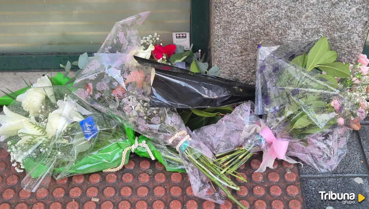 Las flores, alineadas junto a la fachada, han convertido el lugar en un pequeño espacio de memoria espontánea.