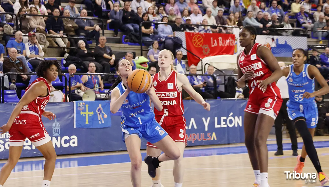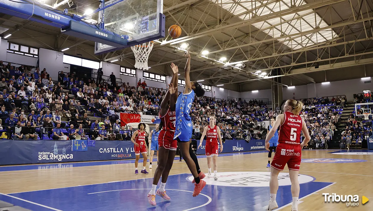 El plan de Avenida fue evidente desde el salto inicial: negar recepciones cómodas a Coulibaly. Virag Kiss asumió el reto con defensa por delante, mucho contacto y un desgaste físico enorme. La húngara sostuvo un bonito duelo en la pintura mientras Iyana Martín arrancaba el partido con determinación, atacando el aro y asumiendo responsabilidad pese a la presión constante de las exteriores gerundenses. El problema para las salmantinas estaba en el perímetro. Los tiros se generaban, pero no entraban. Mientras Girona no se disparara en su media habitual, el partido seguía en un margen manejable. El 15-20 al final del primer cuarto reflejaba esa sensación: Avenida competía, pero no podía conceder ni un respiro ante cada arreón de calidad visitante.