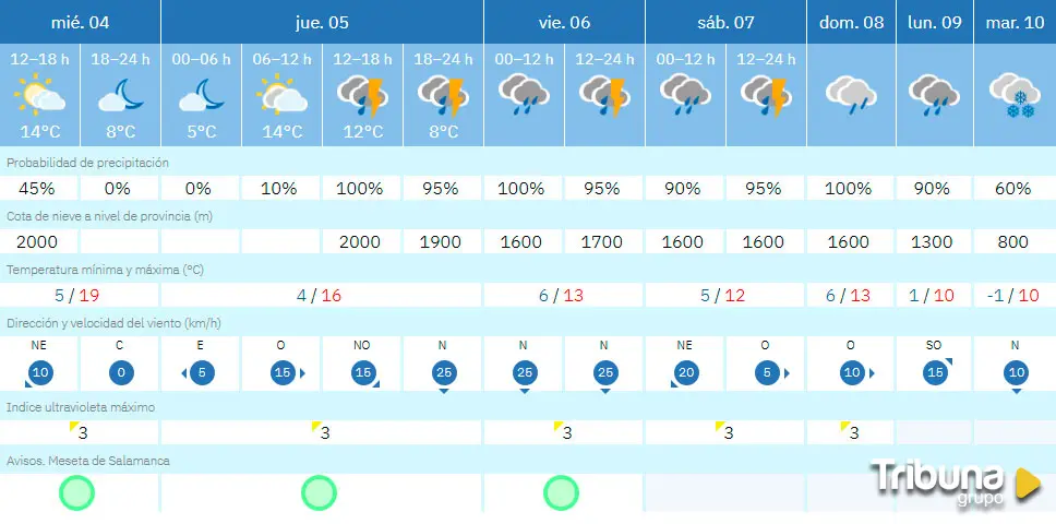 Salamanca vivirá un cambio de tiempo en los próximos días con la vuelta de la inestabilidad, que dejarán lluvia y nieve desde este jueves y, al menos, hasta el martes. Según la previsión de la Agencia Estatal de Meteorología, este miércoles será la última jornada con estabilidad en los cielos salmantinos y desde este jueves volverán las nubes y comenzarán a bajar las temperaturas.