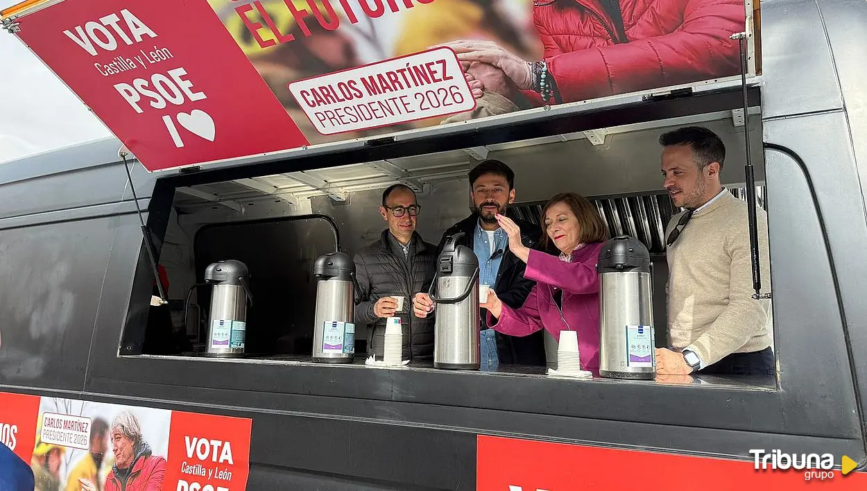 El PSOE ha recorrido parte de la provincia, desde Peñaranda de Bracamonte a Béjar y Ledesma, con paradas también este jueves en los municipios de Monleras, Juzbado, Almenara de Tormes, Valverdón y Cabeza de Béjar. Y en una de esas paradas los vecinos se han encontrado con la 'caldoneta', el singular vehículo que reparte tazas de caldo.