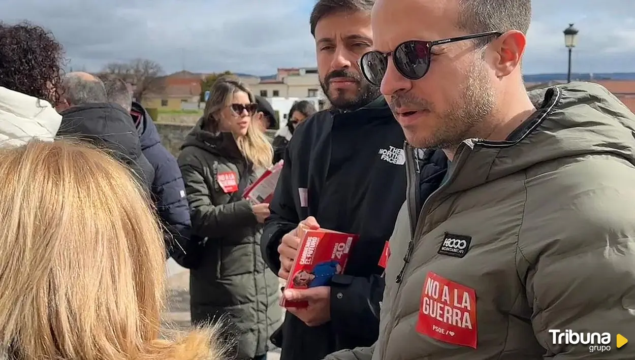 El 'no a la guerra', también en campaña. Y no solo en los discursos, en los que el PSOE lo ha dicho alto y claro, hasta en pegatinas... para que no haya dudas de la posición ante la guerra de Irán.