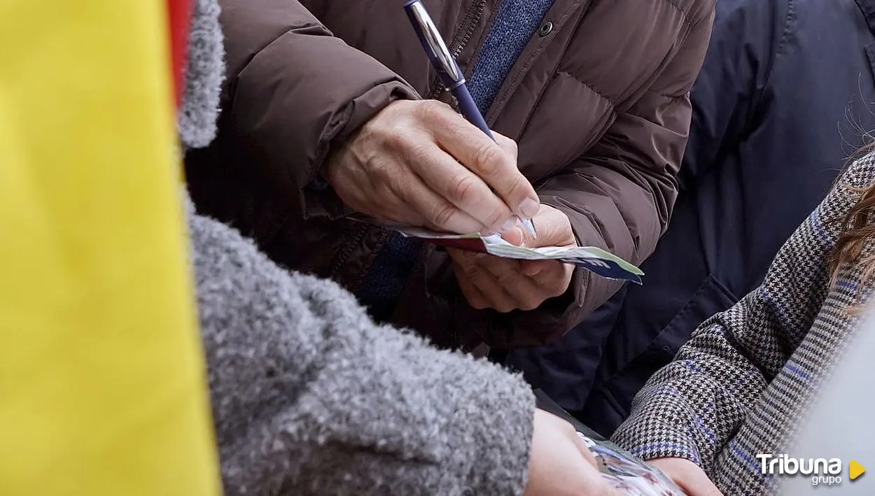 Abascal, echando una firma a una asistente a un acto electoral. (Foto: EFE)
