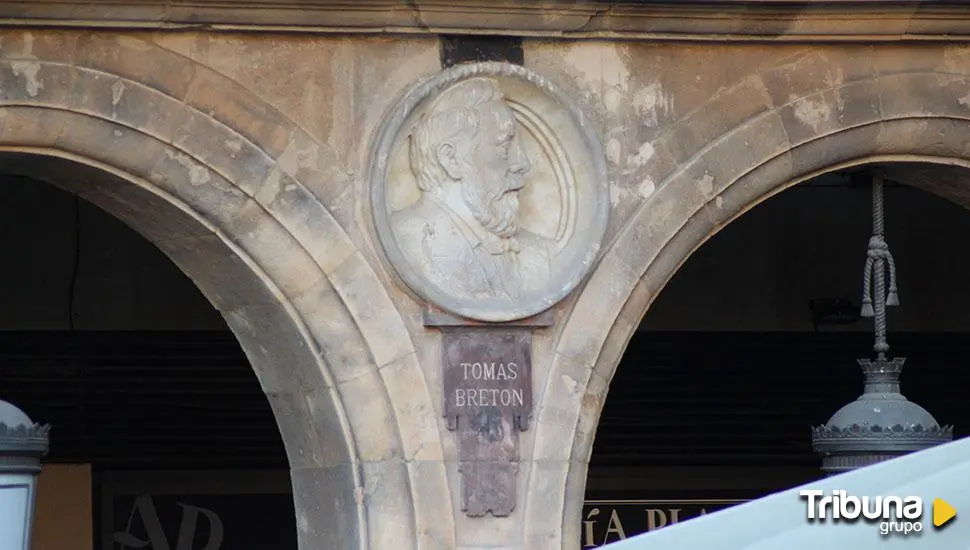 Medallón de Tomás Bretón en la Plaza Mayor.